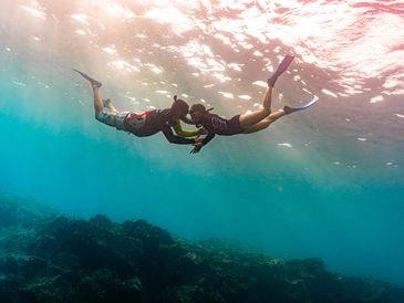 The introductory level session focuses on safety and snorkel equipment use preceding and alongside the photo session. Learn how to snorkel safely and dive just under the surface for spectacular Hawaiian Photos. We will go at your pace with no pressure as you try something new and adventurous!